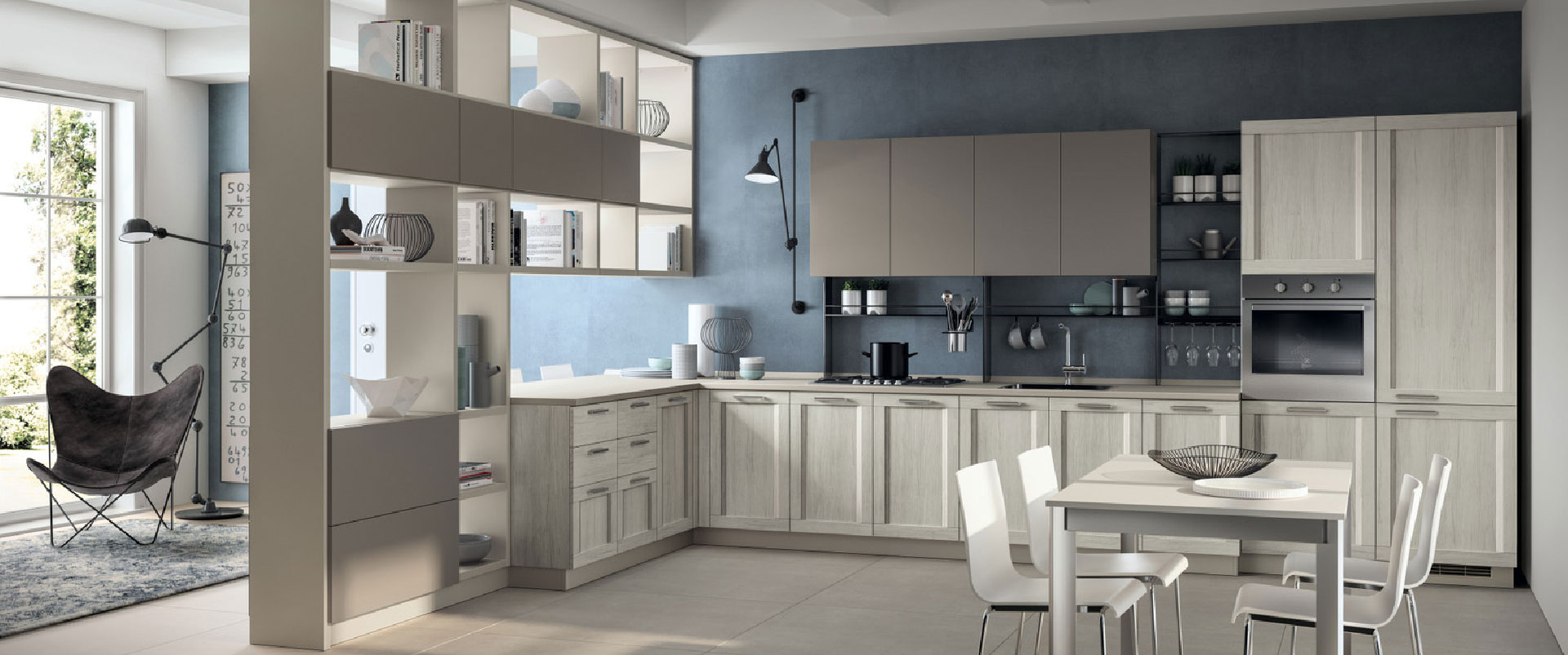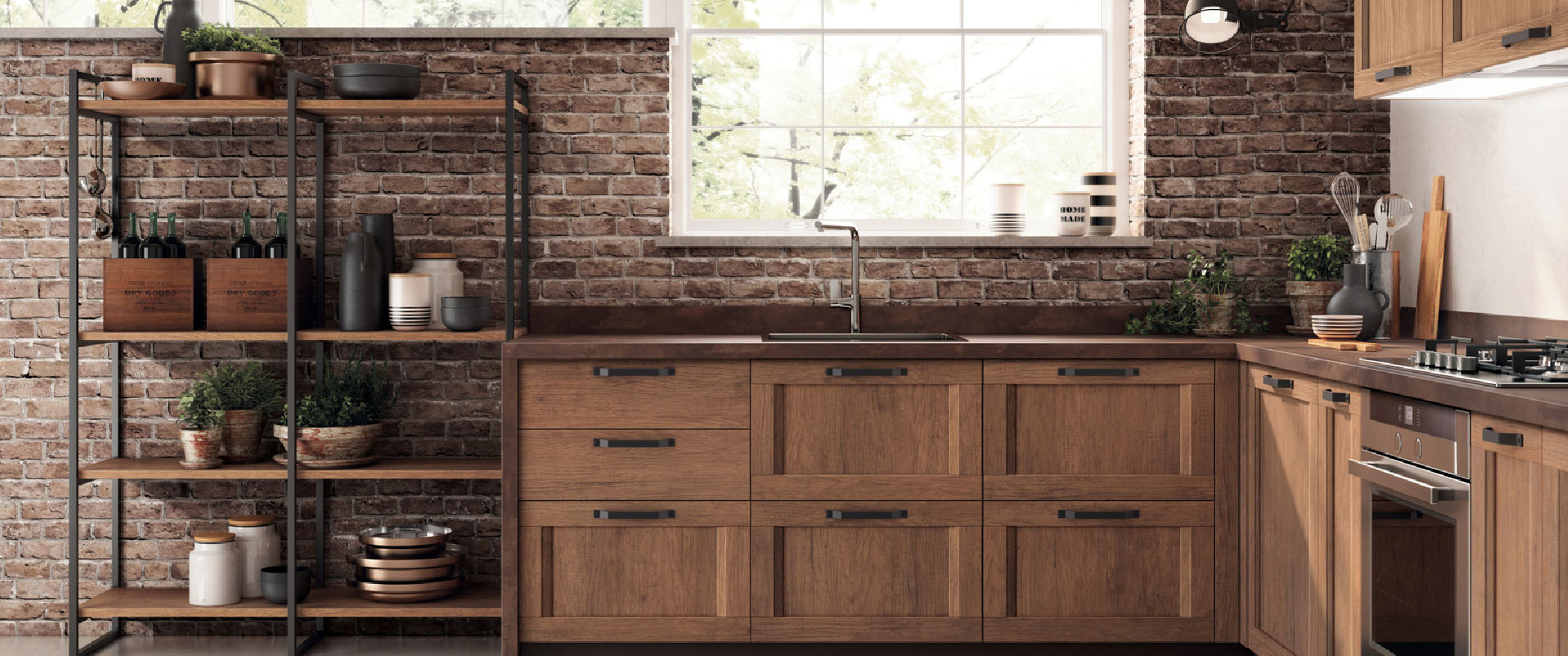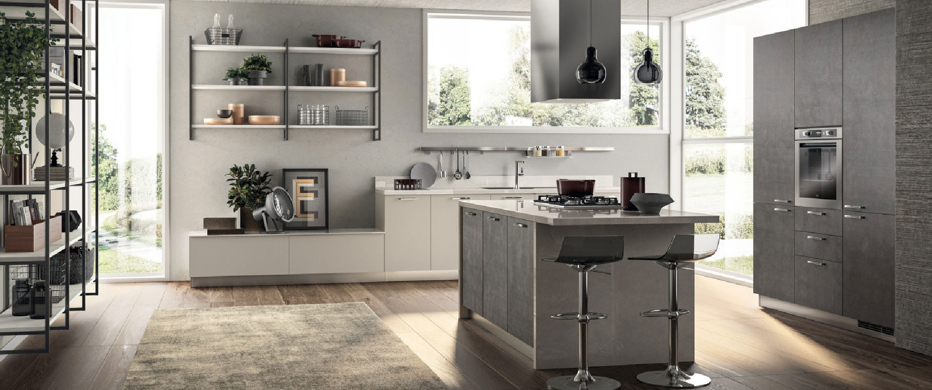Il nuovo volto della cucina Sax – linea Scavolini Basic, design Vuesse – riesce a interpretare lo stile dei laboratori artigianali fino a creare ambienti domestici più raffinati.