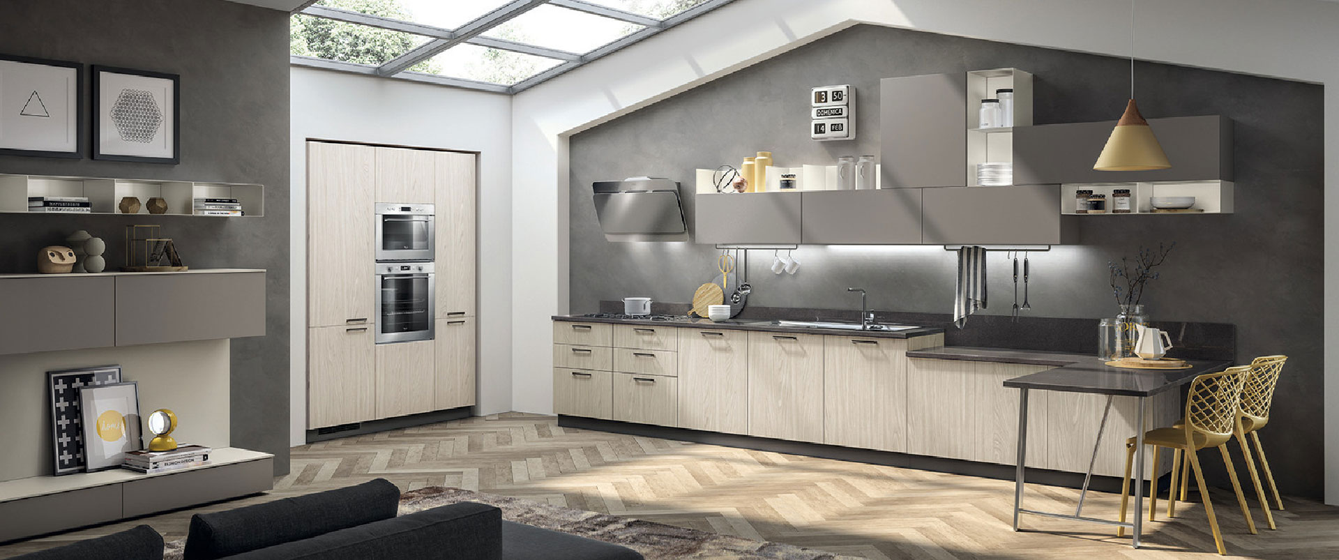 Grande componibilità, ampia scelta di soluzioni, finiture inedite e design di ultima tendenza. Con la cucina Sax e le sue raffinate opportunità, si rende possibile la realizzazione di un ambiente cucina moderno e personalizzato, capace di soddisfare pienamente, per gusto e funzionalità, nuove esigenze abitative.